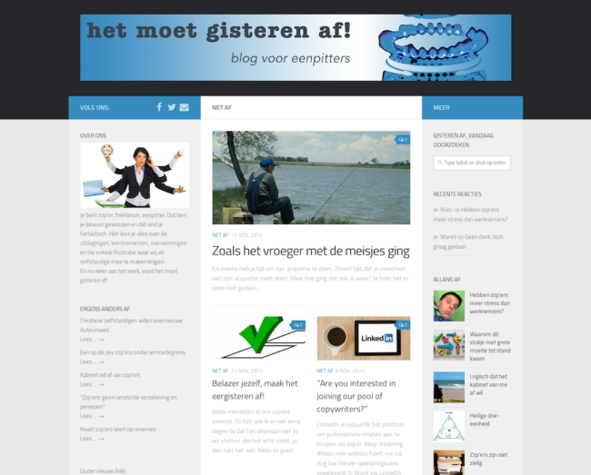 Het idee voor een blog voor zelfstandigen bestond al een tijdje. Eén ding stond vanaf het begin vast: de titel moest worden Het Moet Gisteren Af.